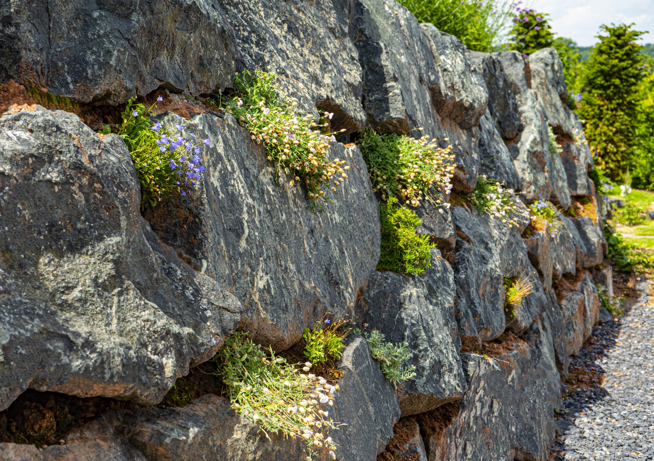 Naturstein schafft Charakter: Die Individualität und Vielfalt verschiedener Formen und Farben des natürlichen Steines erwecken die perfekte Stimmung und Charakteristik der zu Ihnen oder Ihrem Unternehmen passenden Außenanlage. Durch seine naturgegebene Kraft und Widerstandsfähigkeit bietet Ihnen Naturstein das höchste Maß an Qualität und eignet sich perfekt zur naturnahen Freiraumgestaltung. Für Pflasterarbeiten, Treppenbau, Natursteinmauern oder einfach nur zur dekorativen Terrassengestaltung – wir verbinden den zeitlosen Charme dieses hochwertigen Produkts mit den modernsten handwerklichen Techniken und setzen ihn in eine harmonische Symbiose mit der von Ihnen gewünschten Bepflanzung und Gestaltung des Außenbereichs.